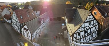 Eine kleine Fachwerkscheune von 1715, wurde von einem landwirtschaftlichen Nebengebäude zu einer Weinstube umgebaut. Im erhöhten Obergeschoss sind Gastraum, Küche und Personalräume untergebracht. Im Erdgeschoss, welches vom Hof aus zugänglich ist, liegen die Sanitär- und Lagerräume.