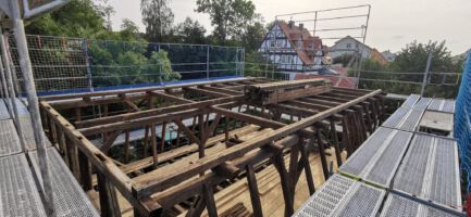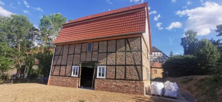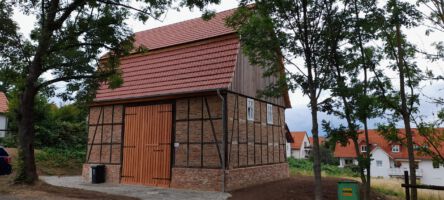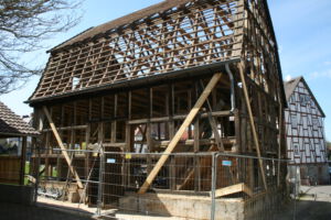 Der Fachwerkverein Kaufungen stellt in Eigenleistung die Dacheindeckung, die Giebelverbretterung und große Teile des Innenausbaues her.