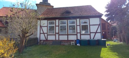 Das Mehrzweckgebäude in Immingerode ist eine alte Einraumschule, die mit der Kirche und dem Pfarrhaus zusammen einen Teil des historischen Ortskerns bildet.