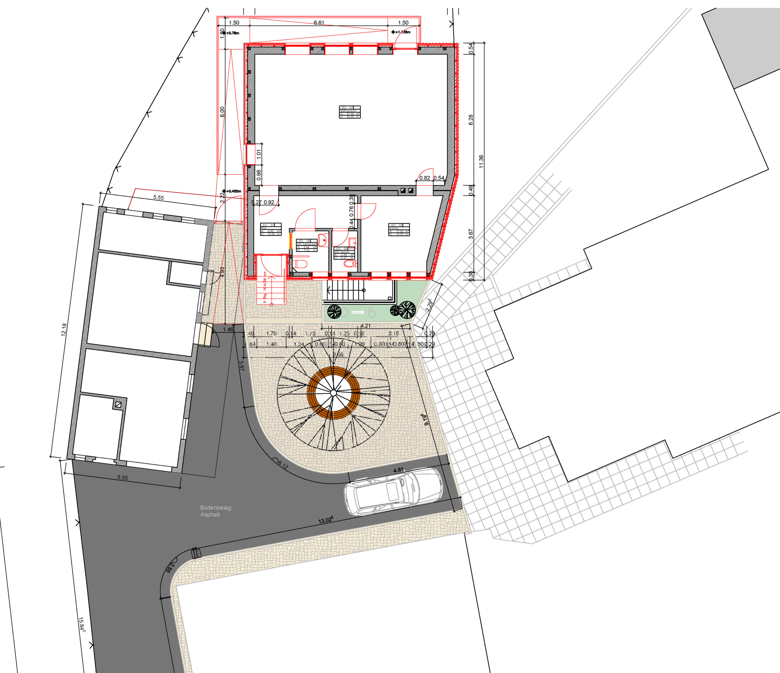 Das Gebäude wird umfassend saniert. Die Außenwände und die Decken und Fußböden werden gedämmt. Die Kunststofffenster werden durch Holzfenster ersetzt und die Ölheizung wird durch eine Wärmepumpe ersetzt.