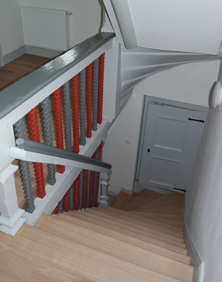 Nach Leerzug wurde das 3-geschossige Fachwerkhaus grundlegend saniert. Neben der substanziellen Reparatur erhielt das gesamte Haus mit einer Innendämmung aus Wärmedämmlehm eine energetische Verbesserung.