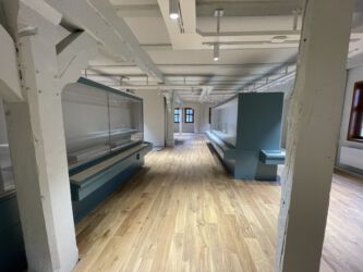 So entstehen im EG und im 1. OG zwei offene Räume für das Regionalmuseum. Im 2. OG gibt es einen neuen Veranstaltungsraum, im Mittelteil das Hochzeitszimmer, sowie einen Raum für Sonderausstellungen.