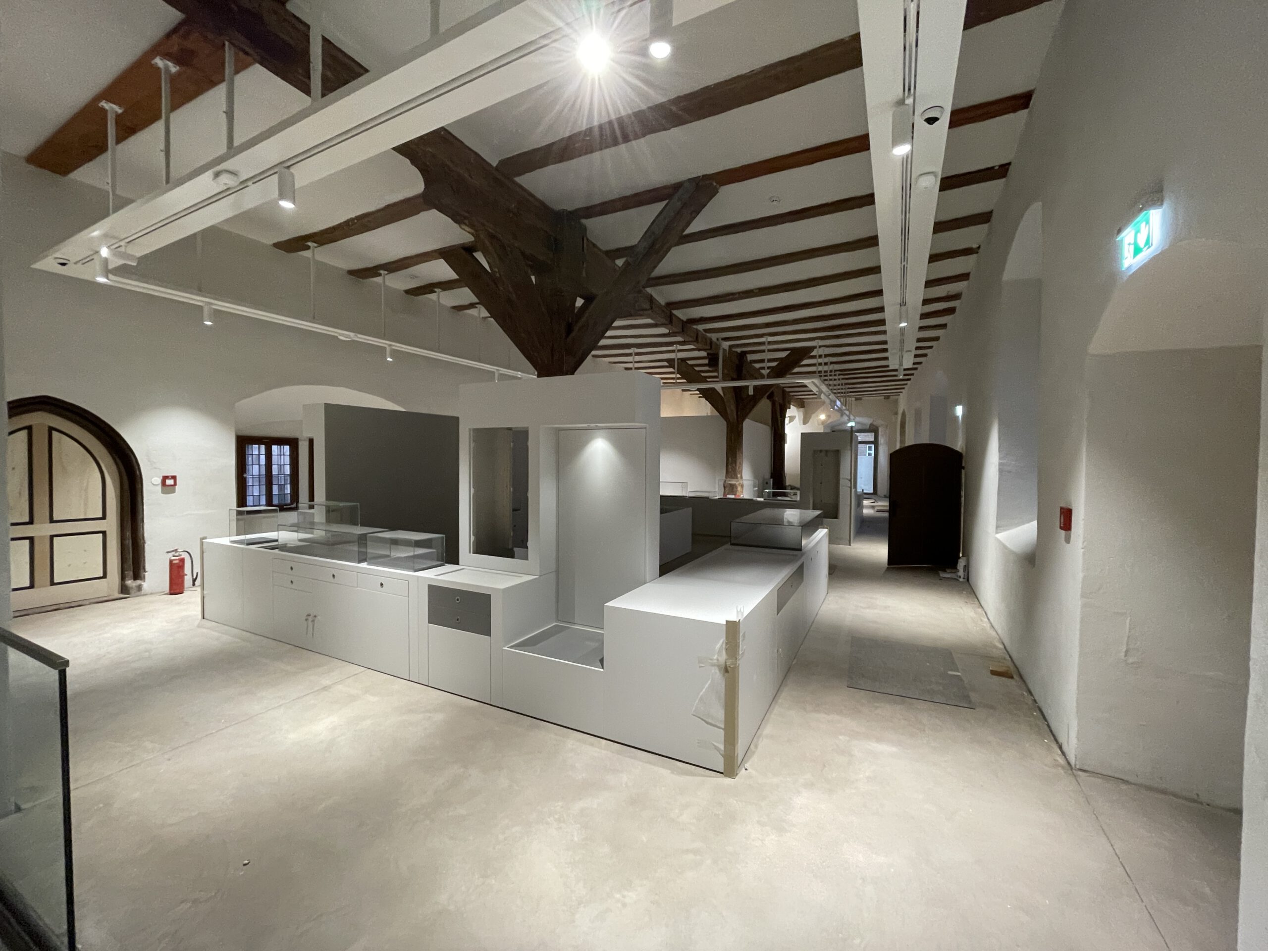 So entstehen im EG und im 1. OG zwei offene Räume für das Regionalmuseum. Im 2. OG gibt es einen neuen Veranstaltungsraum, im Mittelteil das Hochzeitszimmer, sowie einen Raum für Sonderausstellungen.
