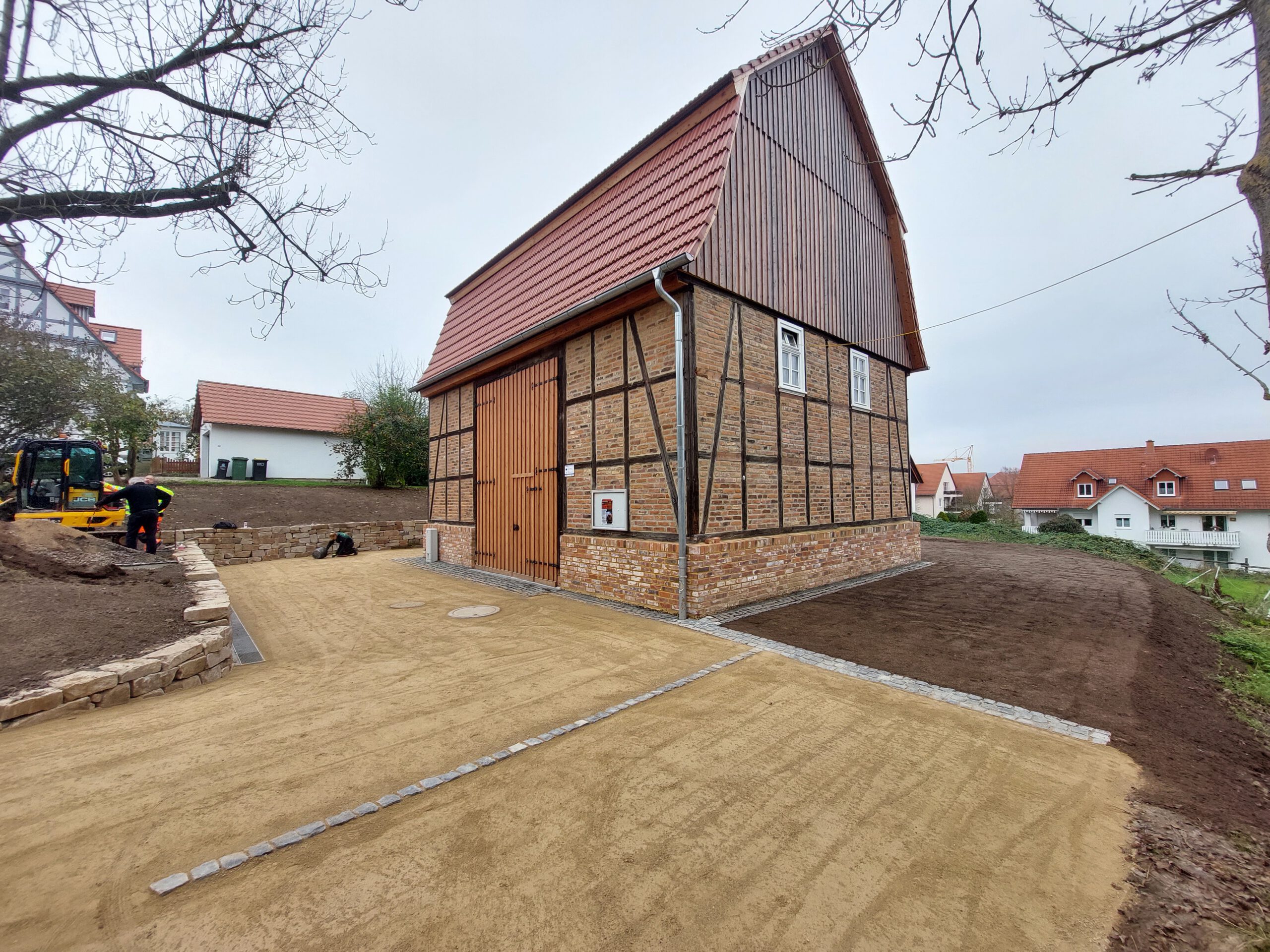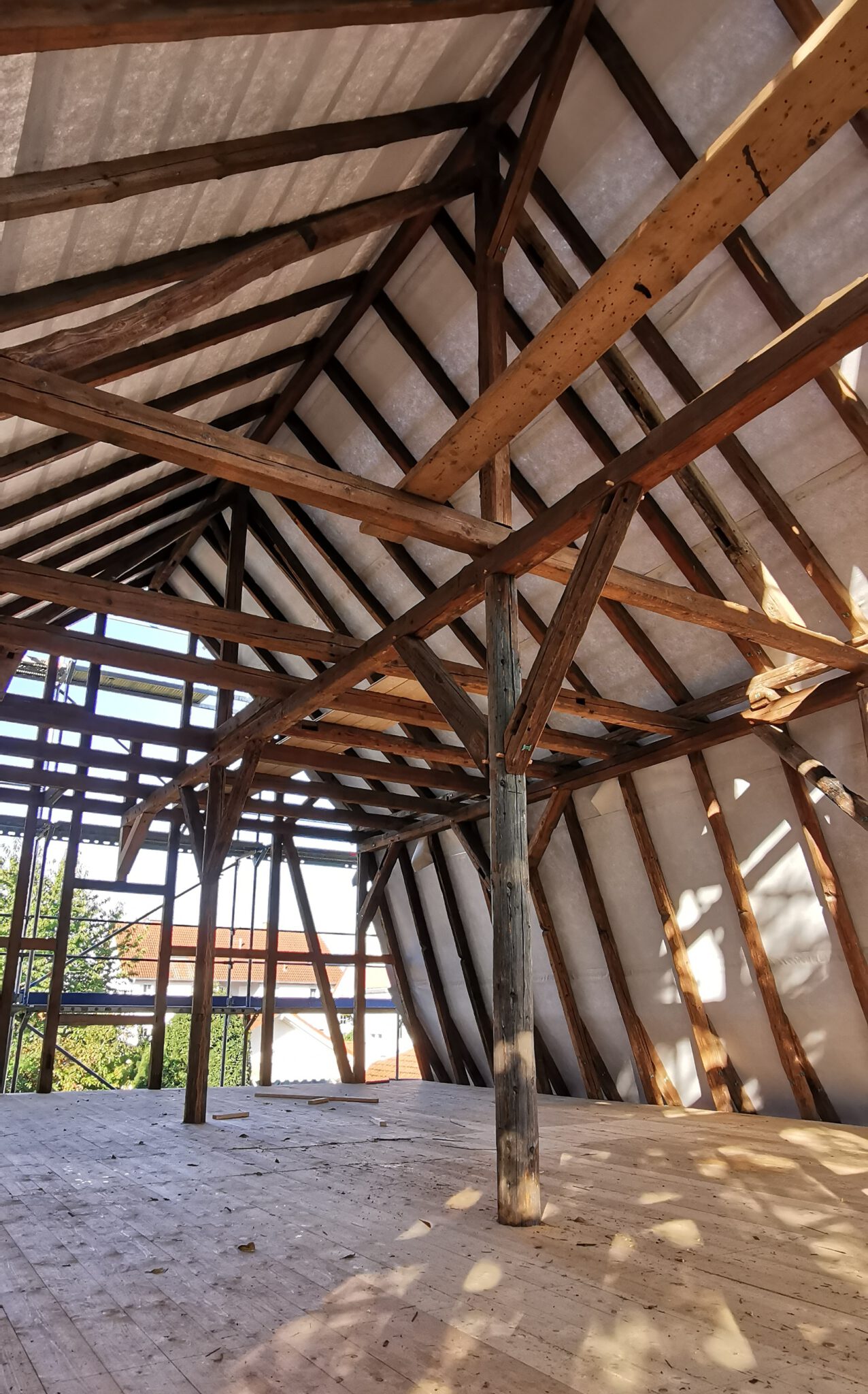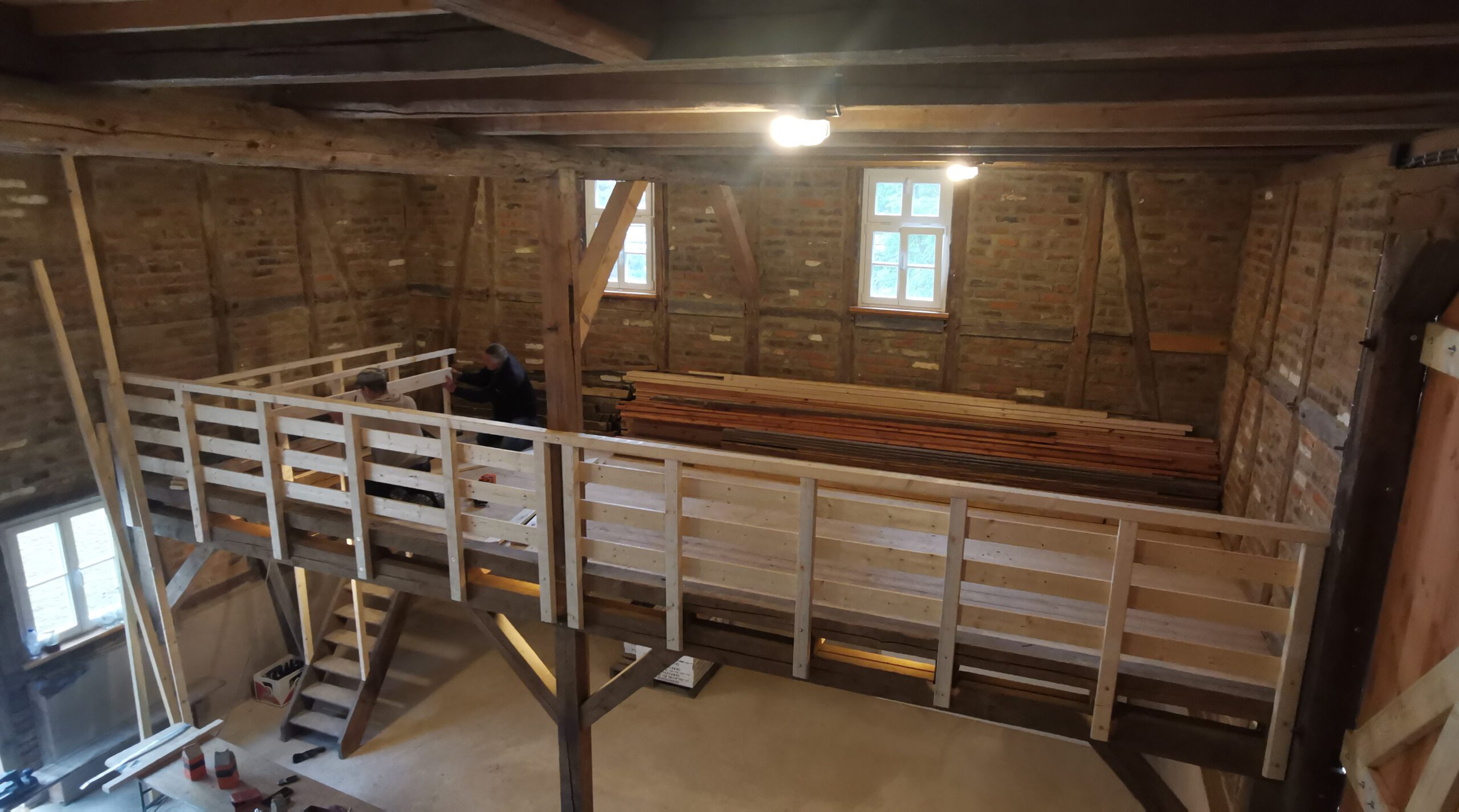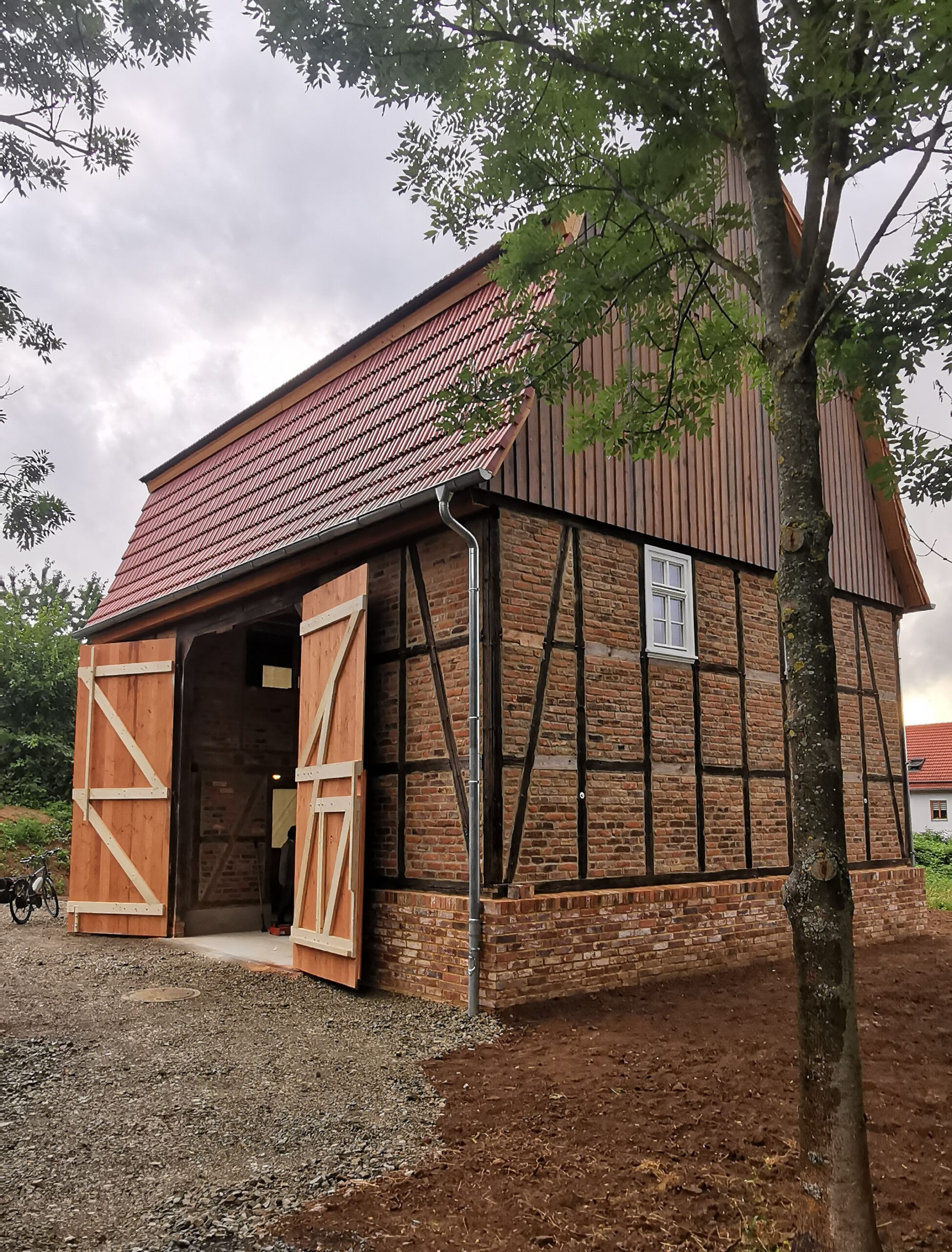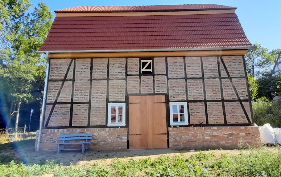 Der Fachwerkverein Kaufungen stellt in Eigenleistung die Dacheindeckung, die Giebelverbretterung und große Teile des Innenausbaues her.
