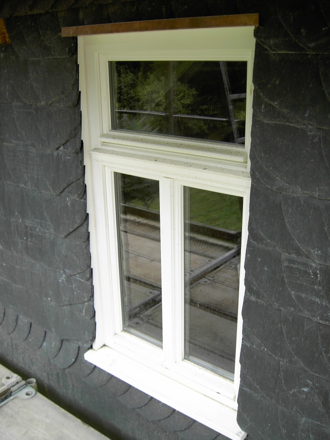 Abgesehen von einer anstehenden Vakanzsanierung wurde das Pfarrhaus einer grundlegenden substanziellen Sanierung unterzogen. Alle Fachwerkfassaden wurden saniert und aus Gründen der Nachhaltigkeit alle Seiten bis auf die Hauptschauseiten mit eine Schieferverschindelung verkleidet. Das Gebäude wurde energetisch ertüchtigt, die Fachwerkfassaden mit einer Innendämmung aus Wärmedämmlehm, die anderen Fassaden wurden mit einer 2-lagigen Außendämmung unter der Verschieferung versehen.