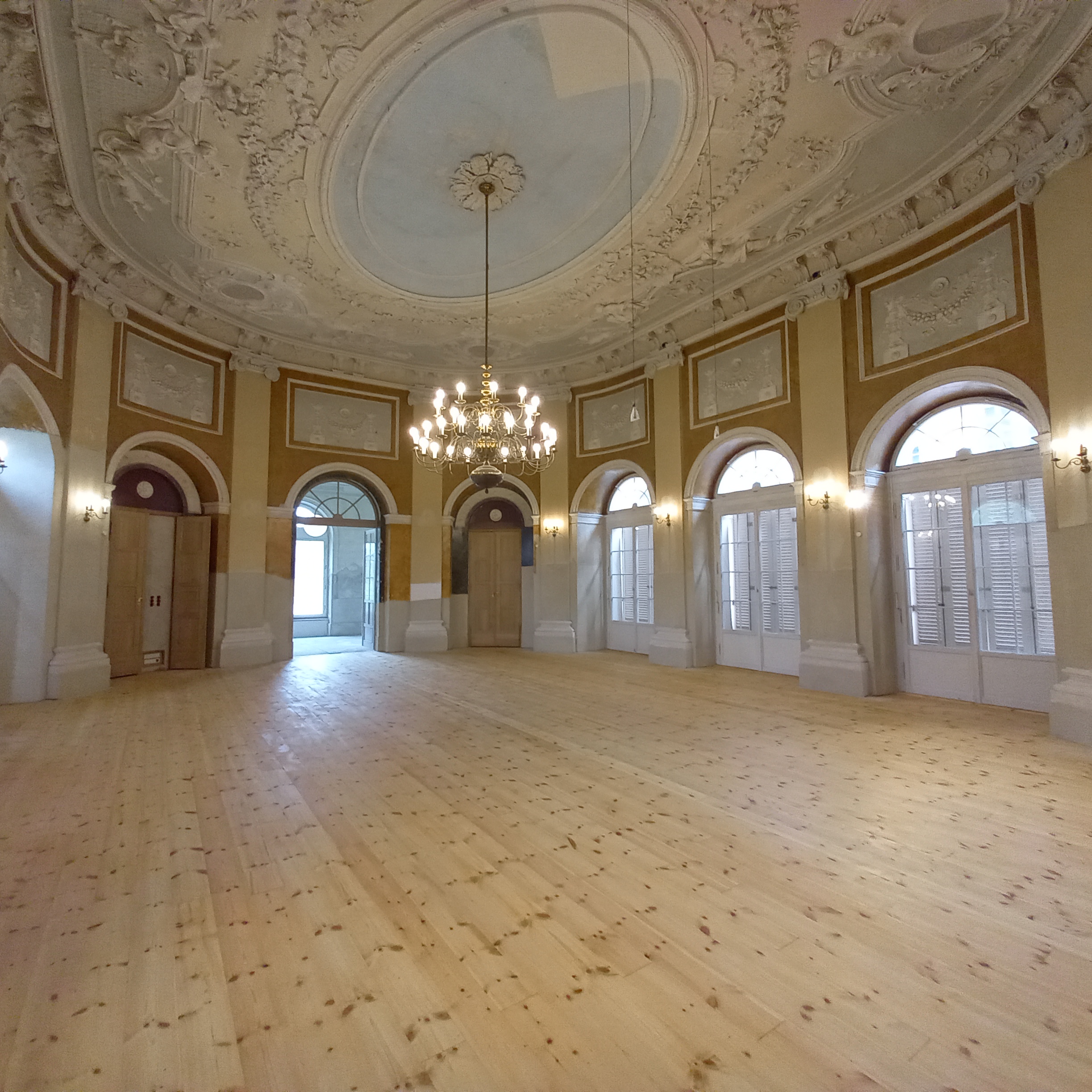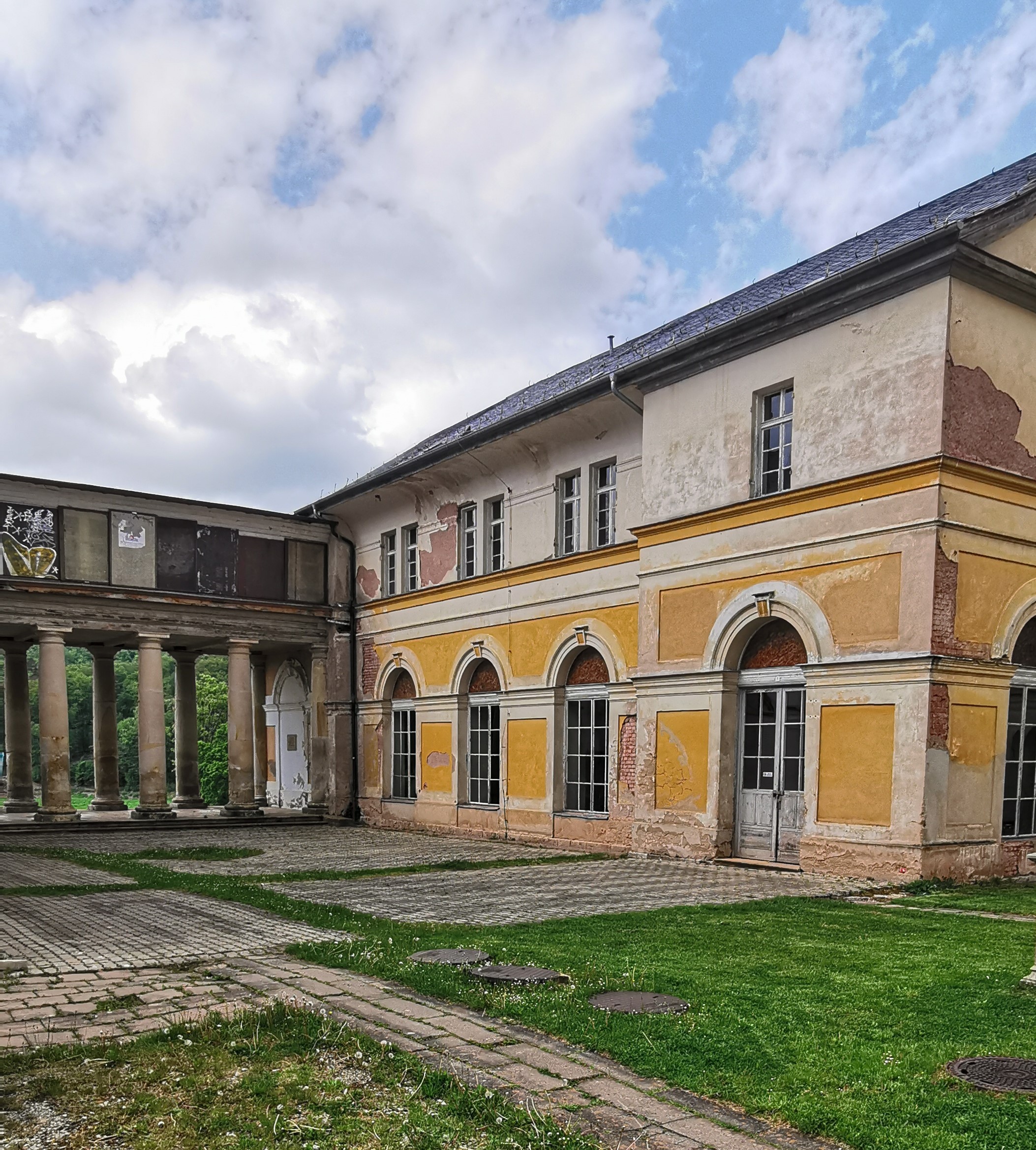 - Neuerstellung der Treppen vom Hof und der Gartenseite in den Saalbau